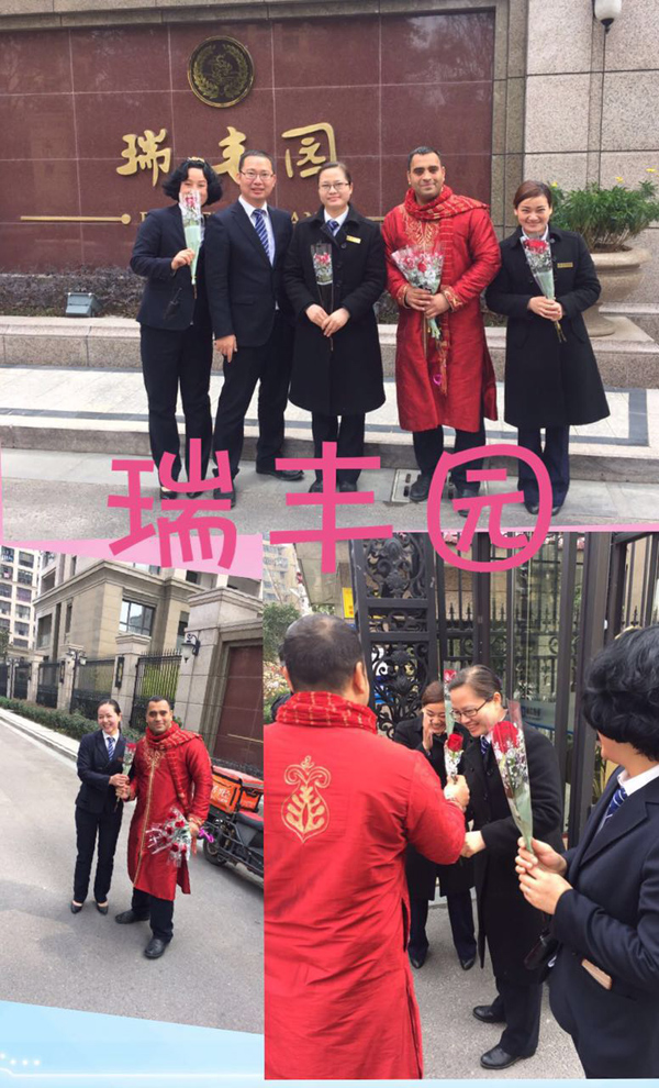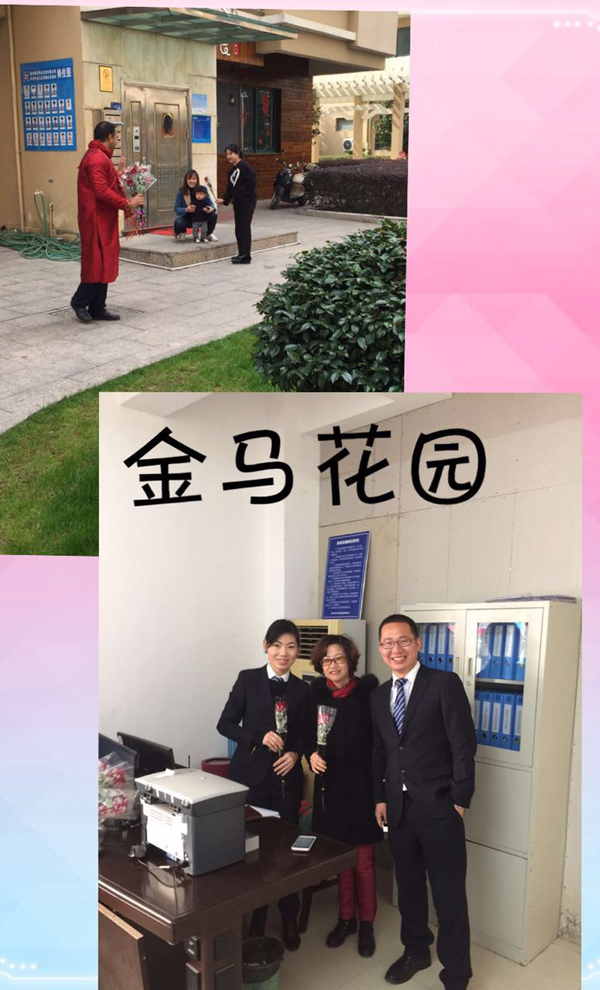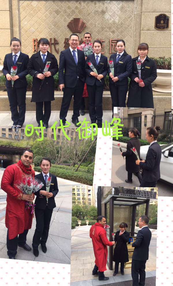 上海花園小區(qū)麗潔物業(yè)總部:一大早,管家們就站在小區(qū)出入口,為每位女業(yè)主送上一束玫瑰